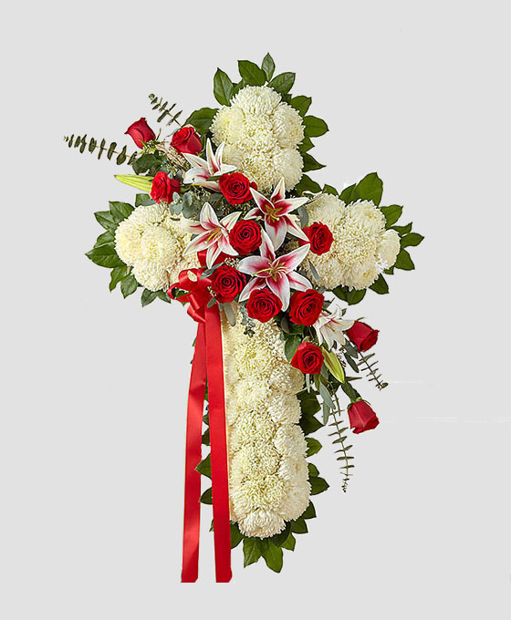 Cruz Funeraria de Clavel con rosas