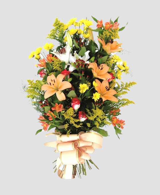 Bonito, de aire silvestre, este Ramo Funerario tonos Naranjas. Es un ramo de defunción, de flores variadas, en tonos naranjas, confeccionado con lilium, rosas, margaritas, solidago, hipericum. alstroemelia y verdes variados que le dan al ramo funerario un aire primaveral y silvestre. Enviamos los ramos como muestra de cariño, aprecio y acompañamiento para la familia de la persona fallecida. Este ramo de flores para difunto, es un producto extraordinario, con flores frescas suministradas a diario por nuestros proveedores, nacionales e internacionales. Por lo que lo elaboraremos lo más parecido posible o a gusto del cliente. Nuestros trabajos de flores para defunción, están siempre realizados con flores y verdes variados, Son ramos para funeral efectuados de forma totalmente artesanal por floristas profesionales, expertos en el arte floral funerario, por lo que su ramo quedará bonito y elegante.